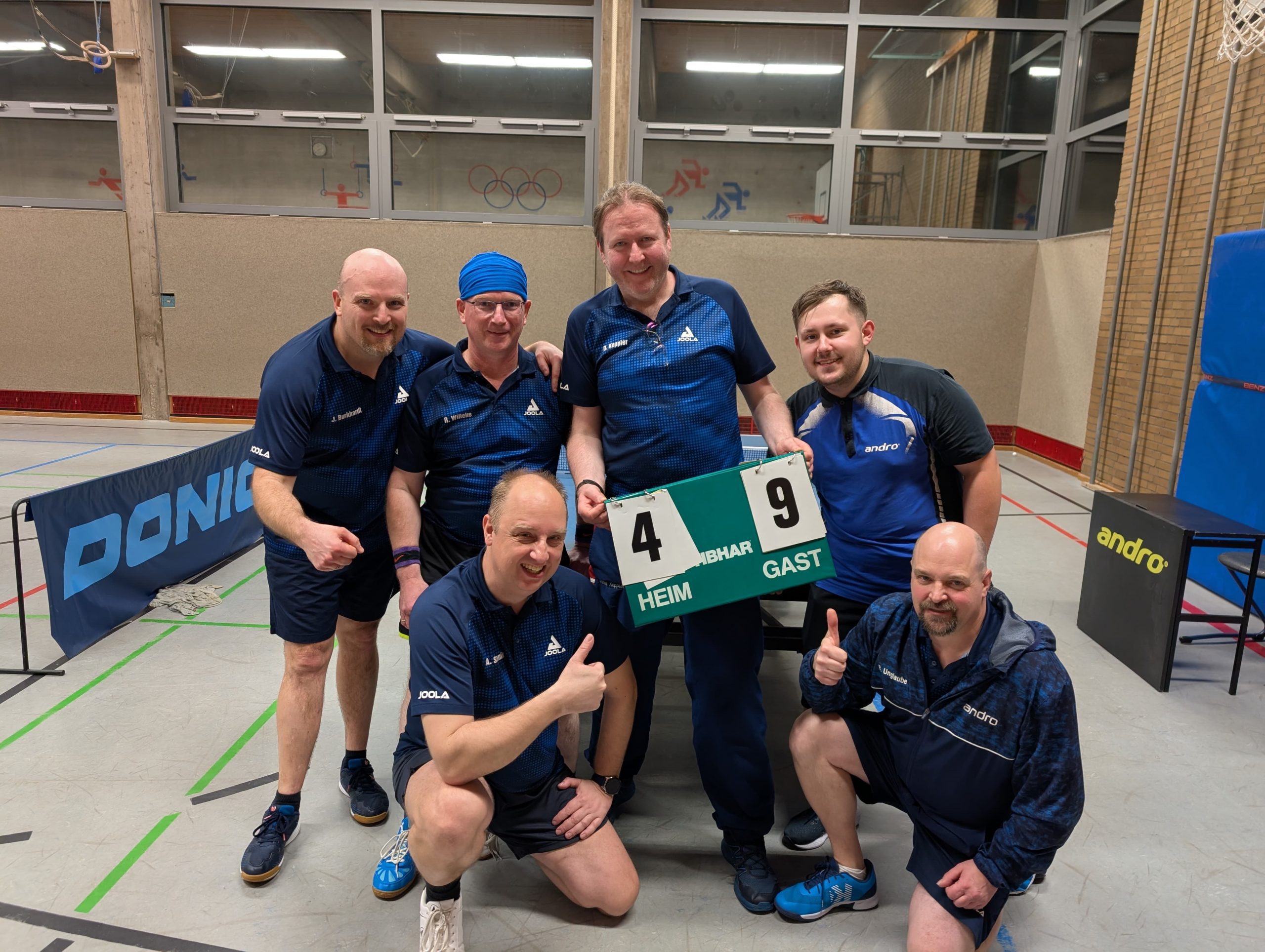 Im Kellerduell musste die Vierte auf mehrere Stammspieler verzichten, schlug sich dennoch tapfer und hielt das Spiel lange offen. Doch am Ende zählten positiv nur die Einzel von Björn Unglaube und Christian Lerchenfeld, der bei seinem Comeback gleich auch noch das gemeinsame Doppel zum Sieg führte.